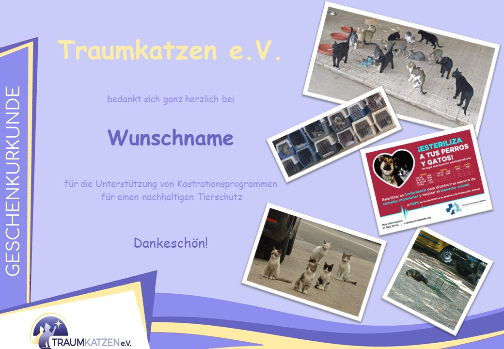 Um nachhaltigen Tierschutz zu betreiben, möchten wir Kastrationsaktionen unterstützen, damit nach und nach die Katzenpopulationen verkleinert und damit die Lebensbedingungen für Straßenkatzen verbessert werden.