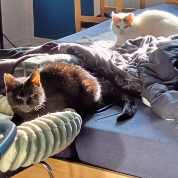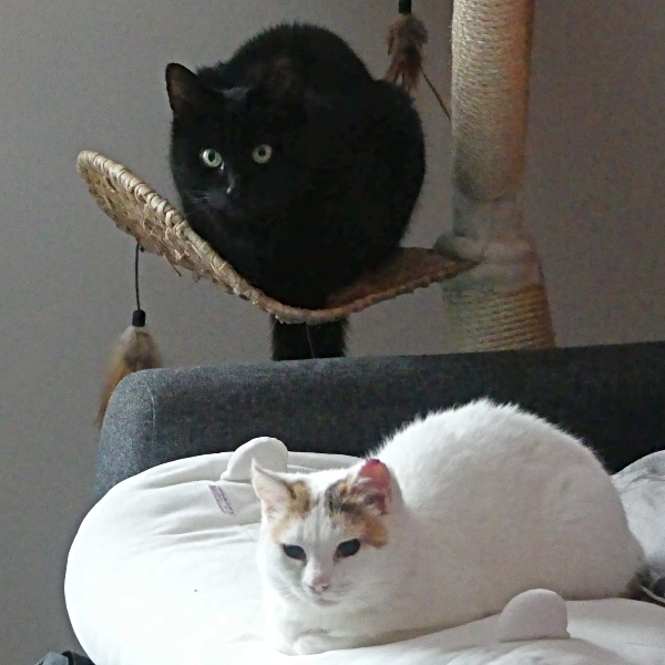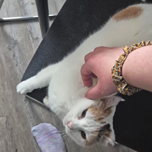 Abyad zeigt sich als liebe und soziale Katze gegenüber ihren kätzischen Mitbewohnern. Sie hat kein Problem damit, sich in eine Katzengruppe zu integrieren, in der sie sich sicher und geborgen fühlt. Es ist zu spüren, dass sie das Zusammenleben mit anderen Katzen schätzt, und sie kann sicherlich auch von einer weiteren sozialen, freundlichen Katze profitieren, die ihr zeigt, dass man Menschen vertrauen darf. Eine Katze, die ihr in Ruhe und Geduld vorlebt, dass Zuneigung und Nähe nichts Bedrohliches sind, wird Abyad dabei helfen, ihr Vertrauen in die Menschen weiter zu entwickeln.