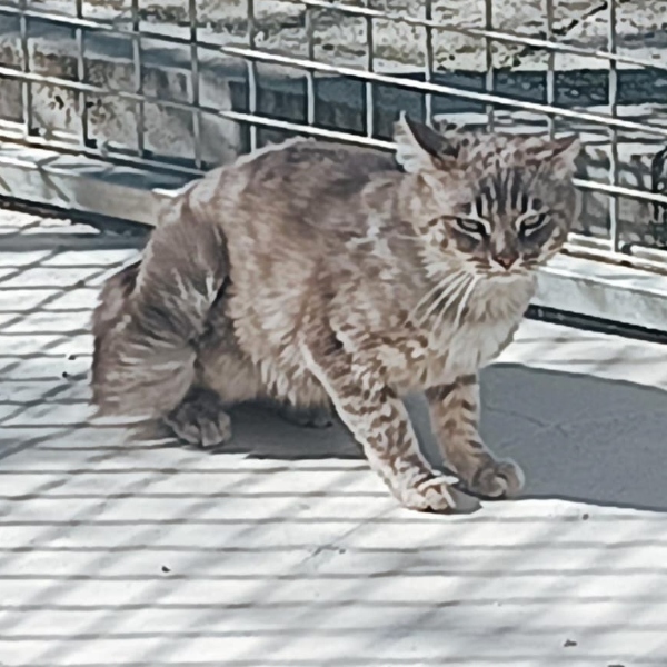 Mittlerweile hat Bahrein für seine Verhältnisse große Fortschritte gemacht. Während der Woche hat er sich an die Routinearbeiten der Tierpfleger gewöhnt. Zwar faucht er noch, wenn er seine Individualdistanz unterschritten sieht, jedoch geht er niemals auf Angriffskurs, sondern läuft davon. Laufen ist vielleicht nicht der richtige Begriff. Er drückt sich wie ein tiefergelegtes Auto am Boden entlang und zwischen seinen Bauch und dem Fußboden passt noch nicht einmal eine Briefmarke. Besonders schlimm sind für ihn die Wochenenden, die Besuchstage im Tierheim, an denen er sich am liebsten eine Tarnkappe überstülpen und sich unsichtbar machen würde.