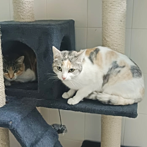 Doch dann, endlich: die Box ging auf – und Chancla zog um ins große Katzenzimmer mit vielen anderen Samtpfötchen. Plötzlich Trubel statt Stille, neue Gerüche, jede Menge Miauen und neugieriges Geschnupper. Die ersten Tage war sie etwas verwirrt, leicht desorientiert, doch schon bald fand sie Anschluss an ein paar besonders sanfte und soziale Katzen, die ihr Sicherheit gaben und ihr halfen, im neuen Alltag Fuß zu fassen. Seitdem wird geschnurrt, gekuschelt und gemeinsam gechillt – als hätte sie nie etwas anderes gemacht.