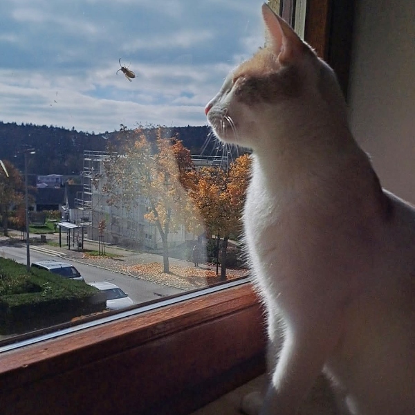 Schön wäre ein abgesicherter Balkon in seinem zukünftigen Zuhause, das könnte seiner Neugier Rechnung tragen, da er ein ausgiebiger Beobachter ist. Mit einem abgesicherten, sonnigen Fensterplatz wäre Pedro aber auch bereits einverstanden.