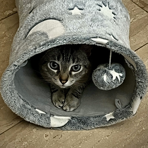 Wie alle Neuzugänge musste auch Reina zunächst die vorgeschriebene Quarantänezeit überstehen – mit gründlichen tierärztlichen Untersuchungen, damit sie sicher und gesund in ihr neues Leben starten konnte. Danach durfte sie endlich in ein Gemeinschaftszimmer umziehen. Dort fand sie sich überraschend schnell zurecht, als hätte sie gespürt, dass sie nun in Sicherheit war. Ihr sanfter, ruhiger Charakter zeigte sich bald: Reina liebt die Nähe zu Menschen, schnurrt voller Hingabe, sucht Körperkontakt und rollt sich schnurrend auf dem Schoß zusammen, als wolle sie all die verlorene Zärtlichkeit nachholen. Aufmerksamkeit und Liebe sind für sie keine Selbstverständlichkeit mehr – umso mehr sehnt sie sich nun danach.