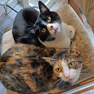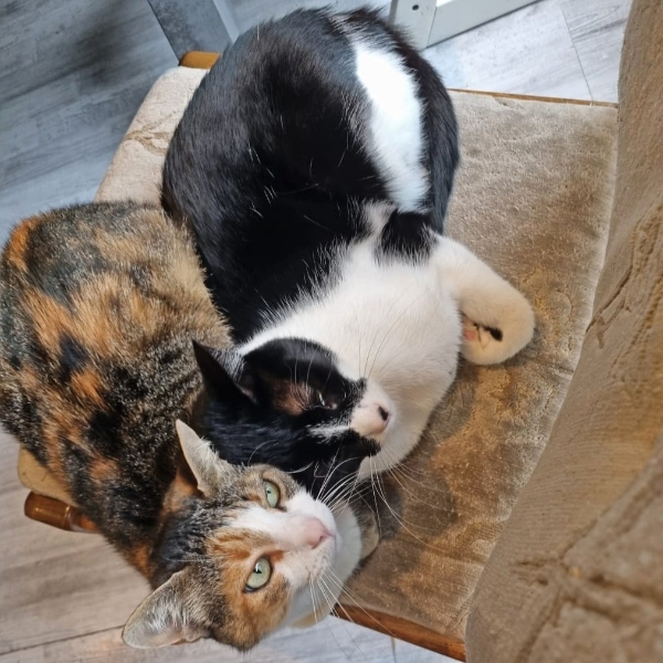 Zutraulicher wurden sie erst, als sie nach abgeschlossener Behandlung endlich aus der blöden und langweiligen Quarantänebox in eine Pflegestelle umziehen durften. Allen neuen Menschen begegnen sie erst einmal vorsichtig und zurückhaltend. Doch man gewinnt schnell ihr Vertrauen, wenn man sie mit interessanten Dingen, wie mit einem Federwedel oder einem Kugelspiel ablenkt. Auch für Leckerchen sind sie zu begeistern. Besonders Nero lässt sich mit einem Goodie gerne bestechen.
