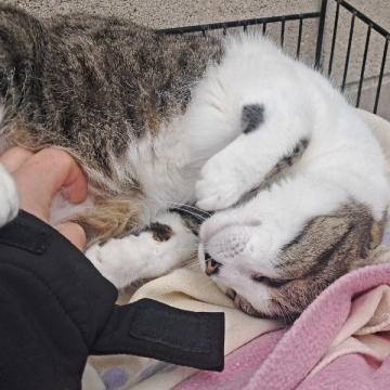Tilo tat sich schwer, sich im Tierheim einzuleben. Er war sehr schüchtern und hatte große Probleme, Menschen zu vertrauen. Auch die Hektik des Tierheimalltags und die fremden Geräusche machten ihm zu schaffen. Doch schließlich half ihm die nette FIV-Gruppe des Tierheims dabei, Fuß bzw. Pfote zu fassen und nach und nach etwas Zuversicht zu erlangen.