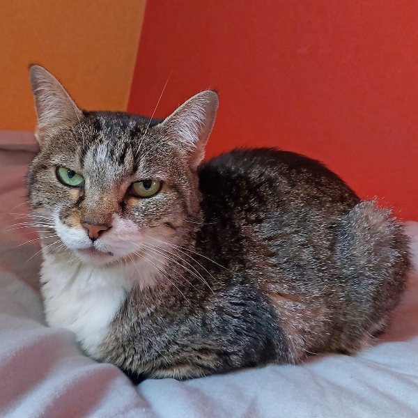 Sicherlich haben nicht Übermut oder Abenteuerlust Toñi (geb. ca. 01/2015) in diese ausweglose Lage gebracht. Vermutlich hatte sie sich erschreckt oder war von einem Hund gehetzt worden und hatte ihr Heil in der Flucht gesucht – allerdings in der Vertikale. Und so saß Toñi hoch oben auf einem Baum und stellte sich die älteste aller Katzenfragen: „Wie komme ich hier bloß wieder runter?“. Tierliebe Passanten verständigten die Feuerwehr, die jedoch von Toñi nicht als Rettung, sondern als weitere Bedrohung angesehen wurde. Ängstlich kletterte Toñi noch höher in dem Baum hinauf, bis die Äste bedenklich dünn wurden. Doch der Feuerwehrmann ließ sich nicht beirren, packte beherzt zu und umklammerte Toñi, bis der Personenkorb der Auszugsleiter wieder sicheren Boden erreichte. Noch einmal mit dem Schrecken davongekommen, wurde Toñi in ein mit unserem Partnertierheim befreundetes Tierheim gebracht. Dieser für Toñi so aufregende Tag, der ein erster Schritt in ein glückliches Leben bedeuten sollte, liegt mittlerweile fast 9 Jahre zurück. In dieser für eine Katze unglaublich langen Zeit, hat Toñi nicht eine einzige Anfrage bekommen oder auch nur einen Besucher für sich einnehmen können. Wie ist das möglich?